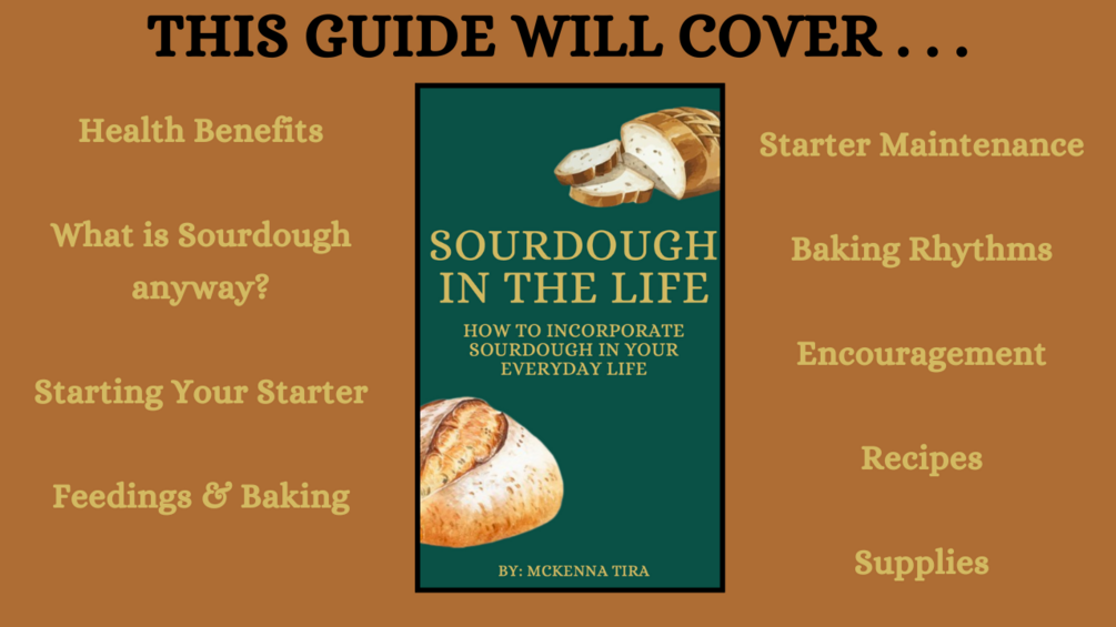 In my sourdough journey, I've fallen in love with the process of creating beautiful, delicious bread along with other creations. Baking sourdough is something I can learn and grow in while feeding my family with the best quality bread I can. It gives me peace knowing that when we eat bread we aren't getting all the added ingredients store-bought bread contains. I believe you can fall in love with this skill too! And at the same time know you are feeding your family the best quality bread you can.